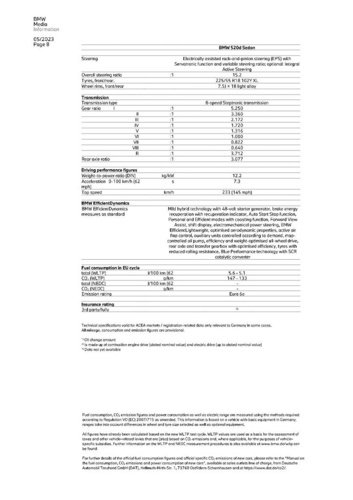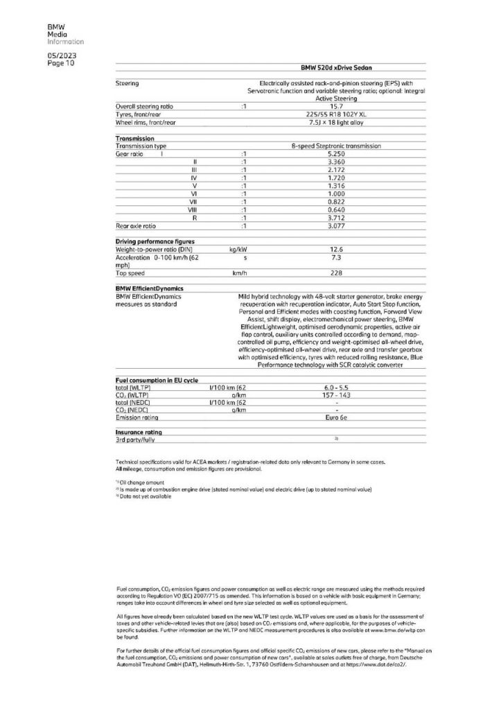 | BMW 520d xDrive | Diesel | 67.700 € | 71.750 € |