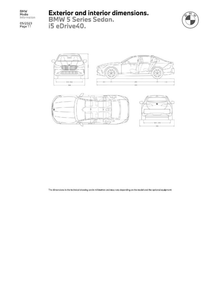 La nouvelle venue grandit un peu (hélas ?) par rapport à son prédécesseur. +97 mm en longueur pour atteindre 5,06 m. La 5 dépasse les 5 m désormais ! On est à 3 cm de la longueur de la précédente Série 7 tout de même… 1,90 m en largeur avec 32 mm en plus, et 36 mm de plus en hauteur pour un total de 1,515 m. Si la longueur a pris 97 mm, seuls 20 sont dévolus à l'empattement qui frôle les 3m avec 2,995 m.