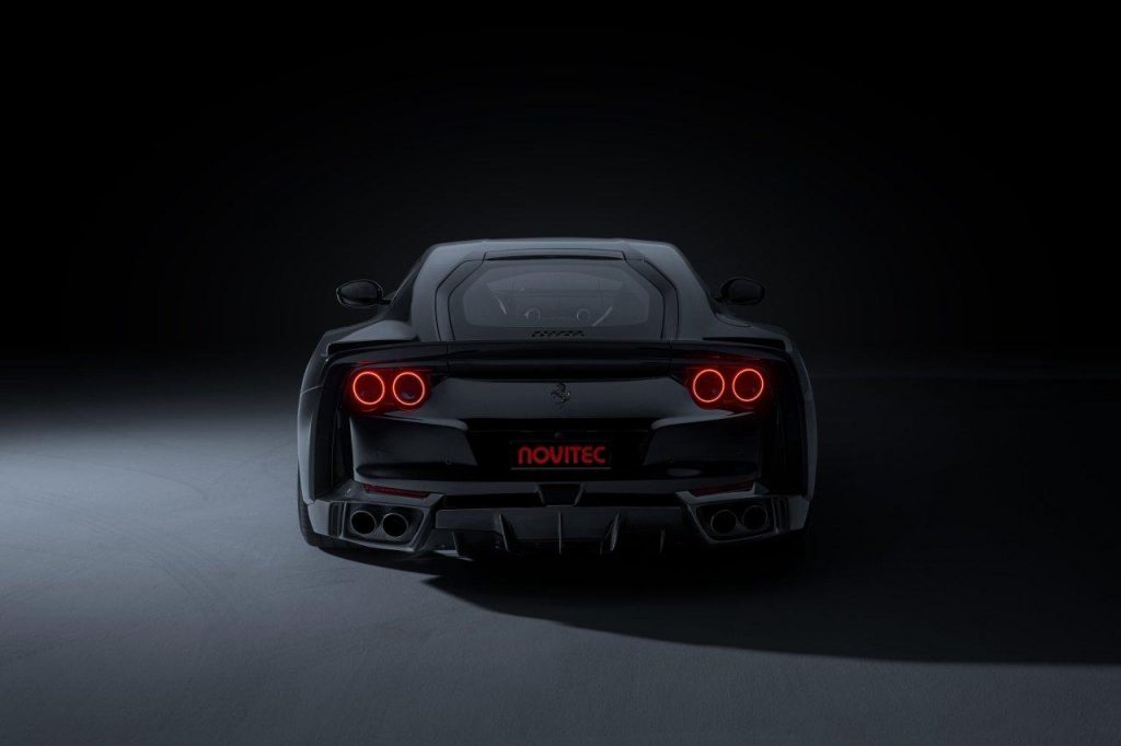 Sous le label N-Largo, Novitec développe des versions spectaculaires à carrosserie large pour les supercars les plus excitantes au monde La particularité de ce bolide ? Sa largeur incomparable, qui atteint un impressionnant 211 cm au niveau de l'essieu arrière, dépassant de 14 cm la 812 Superfast d'origine . Le designer Vittorio Srosek a donné forme à un profil distinctif et à des évasements d'ailes, les intégrant à la carrosserie standard. Le becquet arrière en bec de canard est aussi accentué.