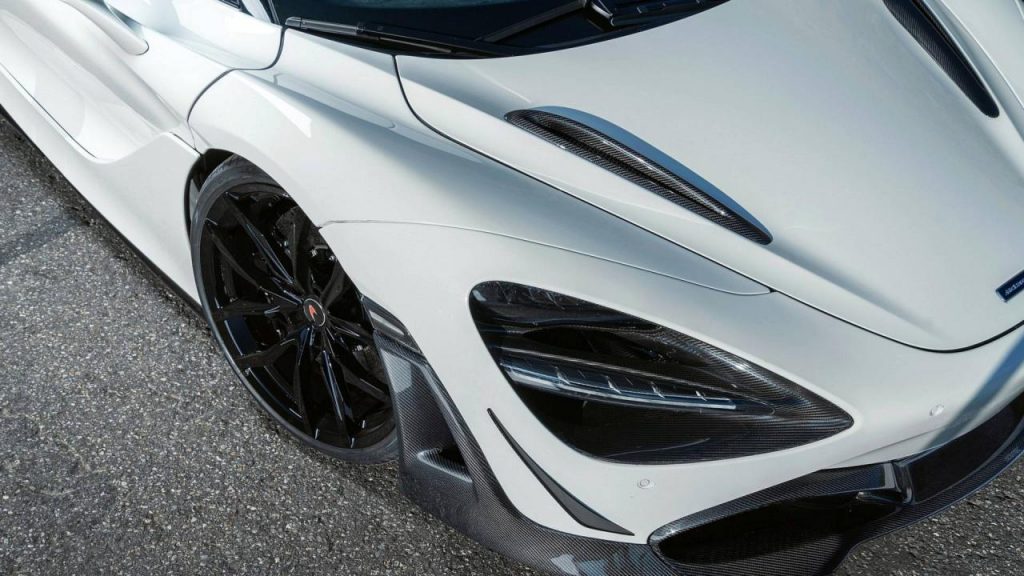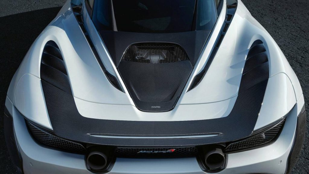Ce surcroît de puissance s’accompagne d’un kit carrosserie en fibre de carbone qui ajoute des inserts en carbone au niveau des blocs optiques, une lame à l’avant de nouveau bas de caisse. Les jantes gagnent respectivement une taille à l’avant (20 pouces) et à l’arrière (21 pouces). Bref, il faudra un œil aguerri pour différencier une 720 S Novitec d’une « normale ».