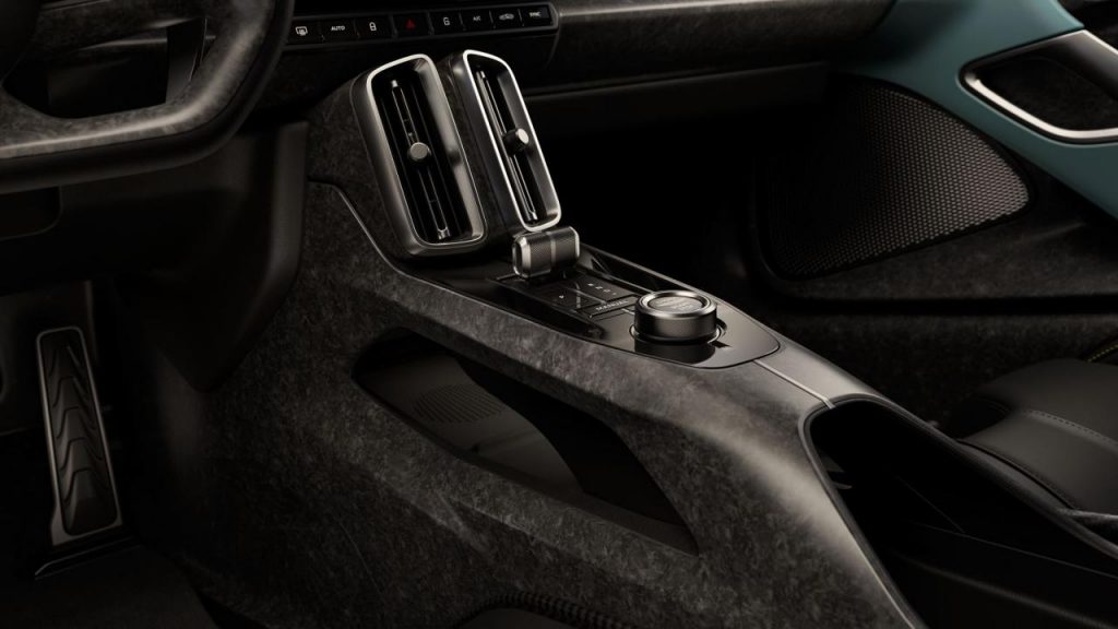 Ah si…on est sur un PHEV. Mais l’autonomie n’est « que » de 14 km. Même si on peut grimper à 140 km/h, cela donne à peine de quoi rouler dans Monaco en tout électrique. C’est déjà pas mal. La batterie fait tout de même 6 kWh. Evidemment, la voiture est entièrement personnalisable via le département Q d’Aston Martin. Le développement est terminé et les premières livraisons devraient intervenir au second semestre 2025. 999 exemplaires sont prévus, ce qui est une « grosse » production pour une telle supercar. Le prix ? Ce serait vulgaire de l’évoquer.