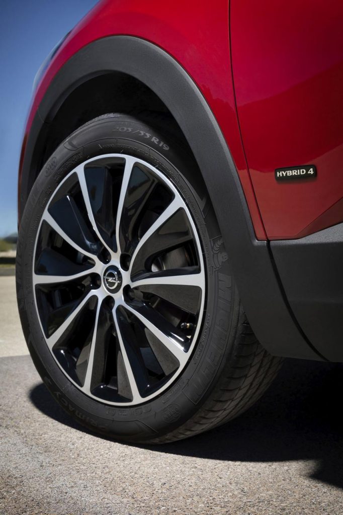 L’Opel Grandland X, qui reprend lui aussi l’appellation Hybrid 4, est le premier modèle hybride rechargeable d’Opel. Partageant sa base avec les autres SUV compacts de PSA, sur la plateforme EMP2, il en reprend donc aussi la mécanique électrifiée. Avec donc un 4 cylindres 1.6 Turbo 147 kW / 200 ch avec une boîte automatique 8 rapports, assisté de deux moteurs électriques de 90 kW / 109 ch pour afficher un total de 225 kW / 300 ch.