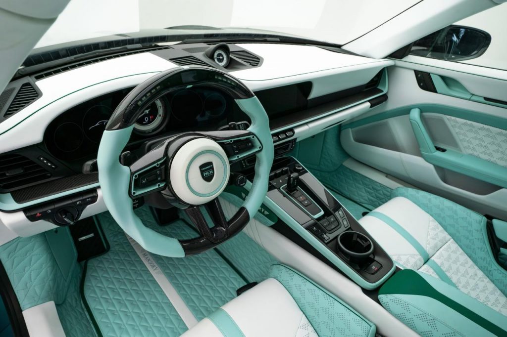 On voit qu’ils ne roulent pas souvent, chez Mansory. L’intérieur blanc va généreusement se refléter sur la pare-brise incliné de la 911.