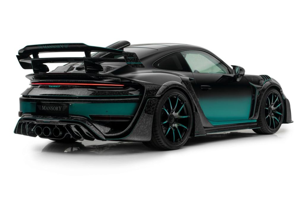 La 911 Turbo S propose d’origine 650 CV et 800 Nm de couple. La préparation Mansory fait grimper les valeurs du 6 cylindres 3.8 litres Biturbo à 900 chevaux (tiens, comme Brabus) et 1050 Nm, pour des performances annoncées à 2.5s sur le 0 à 100 m/h et 340 Km/h en vitesse de pointe. Les composants suivants sont responsables de l'amélioration des performances : des turbocompresseurs VTG plus grands pour chaque banc de cylindres, des tuyaux de descente de 98 mm avec volets d'échappement, un refroidisseur intermédiaire refroidi par eau avec une commande de ventilateur adaptée, un tout nouveau système d'échappement haute performance, un sport filtre à air et une reprogrammation complète de l'unité de commande du moteur (ECU).