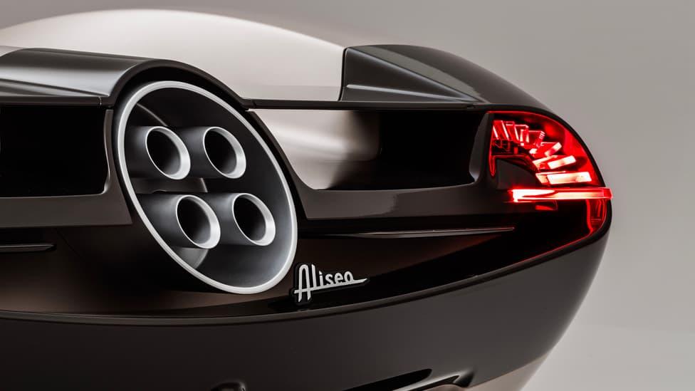 La carrosserie, très épurée, modernise sans équivoque la supercar qui prend des airs de prototype du Mans avec ses passages de roues très marqués et un cockpit qui s’inspire des Groupe C des années 80. Les lignes sont très profilées et avec peu d’arêtes. Pas d’ailerons et d’appendices en tous genres, l’Alisea, qui n’a pas été pensée comme un EV, bénéficie d’un travail aéro poussé qui se situe surtout dans les soubassements du véhicule. À cet égard, la voiture n’est équipée d'aucun élément décoratif pour interrompre les surfaces, qui mesurent 4 522 mm de longueur, 2 055 mm de largeur et 1 070 mm de hauteur, avec un empattement de 2 794 mm. Le cockpit est vraiment très en avant, laissant derrière lui un vaste espace « longtail » où prend place le V12 AMG historique de la Zonda.