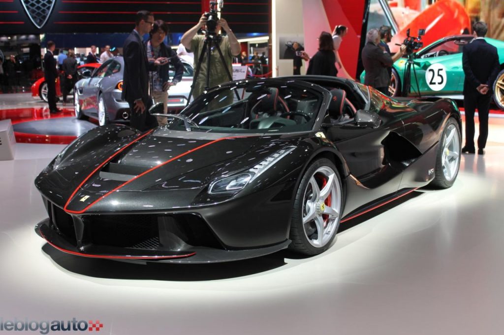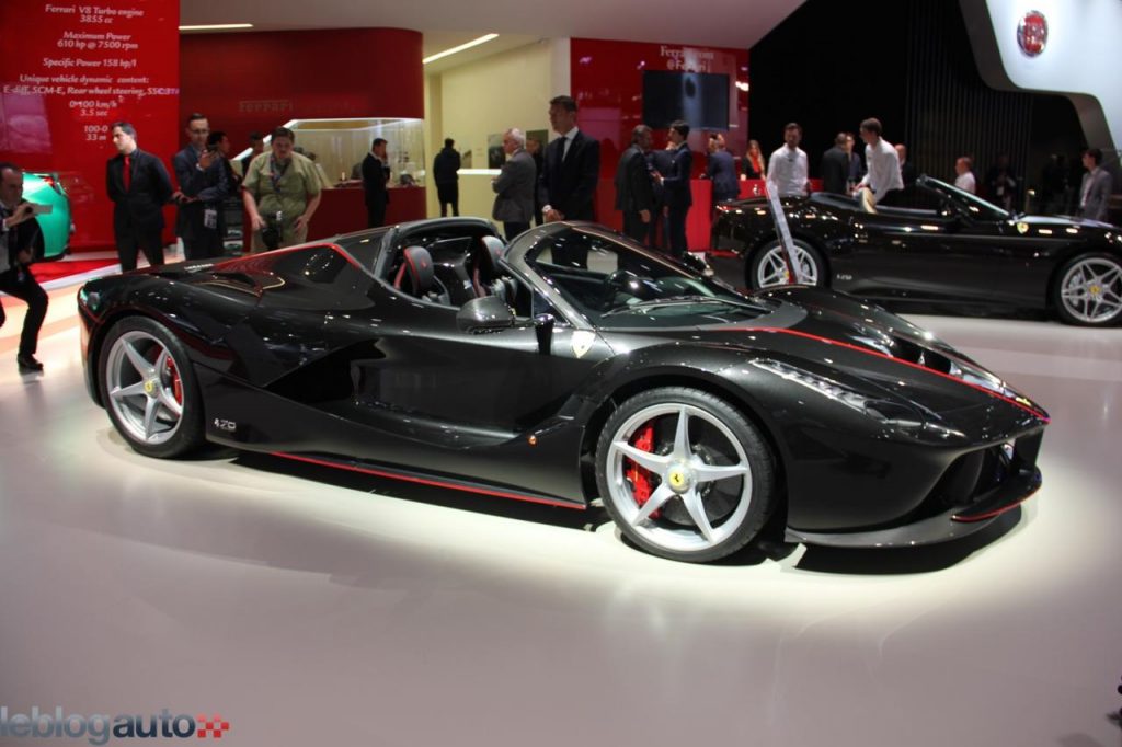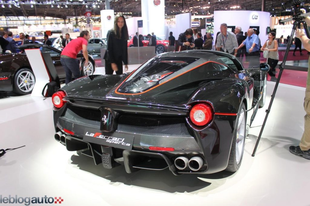 Hélas, il faudra se contenter de la dévorer des yeux cette Ferrari LaFerrari Aperta. Car, même si vous aviez le compte en banque suffisamment garni pour vous en payer une, les 70 exemplaires sont déjà tous pré-vendus. Ou alors il faut vous rabattre sur le premier modèle revendu en occasion à un prix…spéculatif. Le modèle exposé à Paris est dans une robe noir métallisé rehaussée par des liserés rouges.
