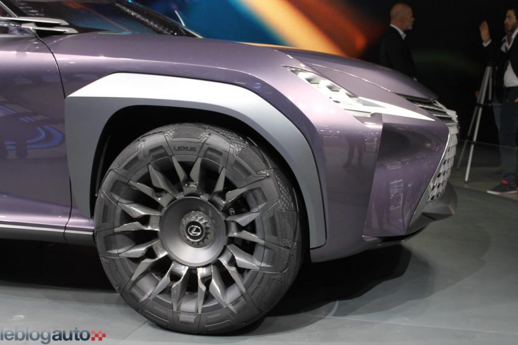 Côté look, ce Lexus UX Concept ne peut pas laisser indifférent. On aime ou on déteste, mais Lexus réussit là un bel exercice de style. La calandre, symbole de la marque est ici traité avec une grille particulière faisant ressembler le Lexus UX Concept à un langolier.