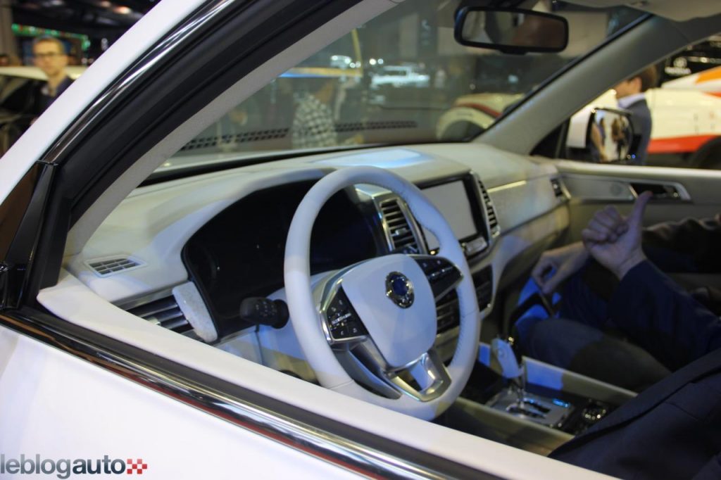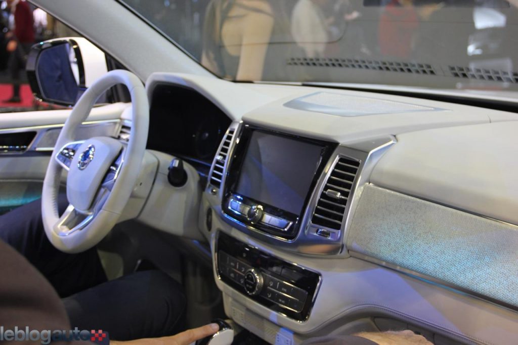 L’immense console centrale se poursuit à l’arrière et le SsangYong LIV-2 concept est un strict 4 places. La planche de bord devrait se retrouver elle aussi sur le Rexton de production. Ce SsangYong LIV-2 concept annonce la couleur, le prochain Rexton aura des lignes tendues et une allure plutôt massive avec une ceinture de caisse assez élevée et des lignes de forces marquées sur les ailes avants et arrières.
