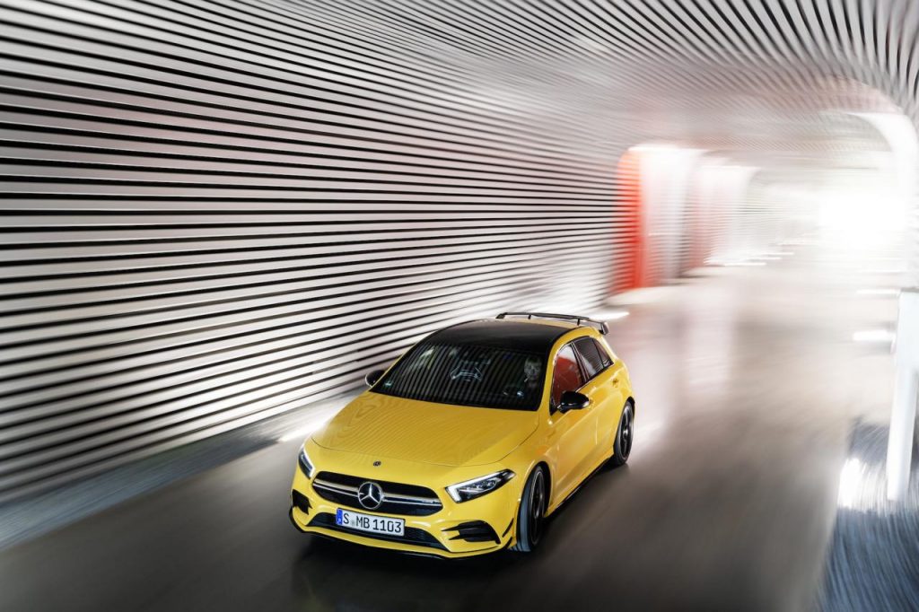 La Mercedes-AMG A35 abrite sous son capot un 2 litres turbocompressé qui développe une puissance de 306 ch et un couple de 400 Nm à partir de 3 000 trs/min. Cette puissance respectable est envoyée aux quatre roues via une boîte automatique à double embrayage à sept rapports 7 G Speedshift et à une transmission intégrale variable 4Matic. Celle-ci peut répartir le couple entre les essieux, jusqu’à un rapport de 50/50, ou envoyer la totalité sur les roues avant.