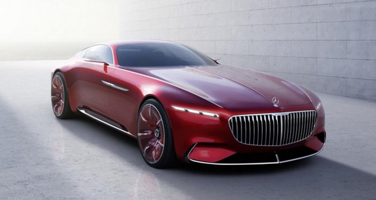 Et il y a le style, le design, les proportions, l’habitacle, ici un lien avec le Concept IAA, là un lien avec le concept F 015 Luxury in Motion. Très long capot, poupe distinctive, ligne de toit basse, calandre agressive, arrière plongeant, portes papillon comme un hommage à la 300 SL, lunette arrière spécifique (split window), pare-brise avec écran transparent, livrée de carrosserie rouge Maybach, jantes de 24″ dans la lignée de celles vues sur le Concept IAA, cuir, matériaux nobles, boiseries, set de deux valises exclusif, réalité augmentée commandée par les gestes, diffuseur alu, sorties d’air derrière les passages de roues, affichage numérique et compteurs traditionnels ronds, caméras numériques à la place des rétros, aluminium, capteurs surveillant quelques fonctions vitales, etc, etc.