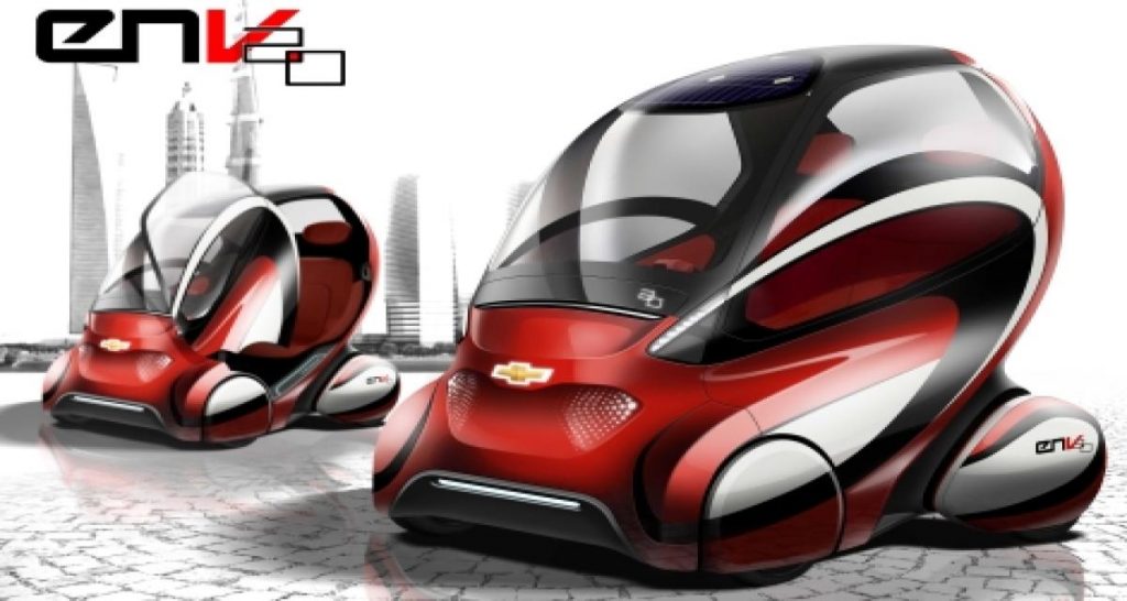 Par rapport à la première version de son concept, l’EN-V 2.0 gagne 2 roues supplémentaires et ressemble un peu plus à un véhicule qui pourrait se retrouver à moyen terme sur nos routes. Pour le reste, très peu de changements. Le concept est toujours un véhicule électrique pouvant embarquer 2 personnes et quelques affaires sur 40km environ. General motors est plutôt avare en chiffres concrets mais évoque un véhicule mêlant mobilité et communication. Le véhicule sera en effet capable de communiquer avec différents systèmes lui permettant d’éviter les bouchons, de trouver des places libres, etc. et sera même capable de communiquer avec d’autres EN-V 2.0 afin de former un groupe. Un réseau social roulant en somme.