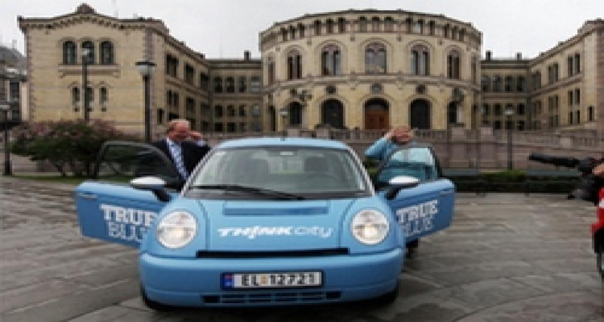 Récemment en escale à Oslo, la Th!nk City a reçu la visite d’Erna Sorbe, responsable du parti conservateur, à l’occasion d’une parade aux côtés d’une soixantaine autre de véhicules électriques. « Je suis une grande partisane des véhicules électriques. Il est temps pour nous de commencer à construire l’infrastructure en Norvège pour encourager une plus grande adoption des véhicules électriques« , déclarait notamment la responsable politique. Homologuée au niveau européen, la Th!nk City s’offrait en complément un petit coup de pub (malgré un tarif dispendieux de 244 000 couronnes norvégiennes).