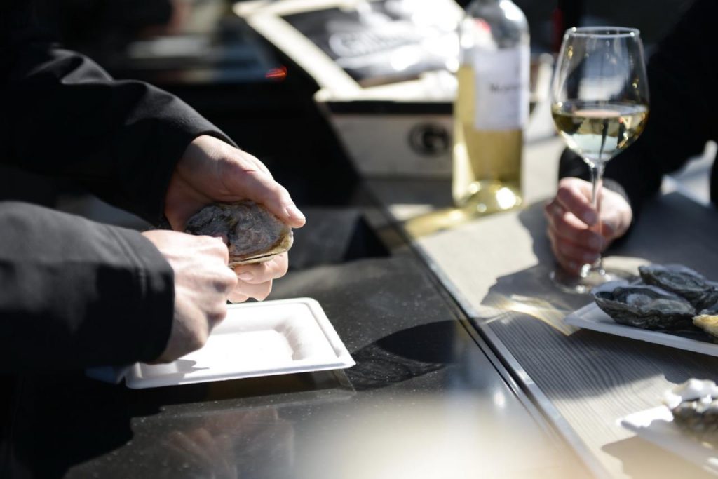 Comme dans un bar à sushis, l’écailler est au même niveau que ses clients. Ils peuvent ainsi sa maîtrise du couteau à huîtres et lui demander deux-trois tuyaux pour ne pas finir aux urgences le soir du réveillon de Noël. Outre ses outils à portée de main, l’écailler peut évacuer les coquilles rapidement grâce à une trappe intégrée dans le plan de travail.