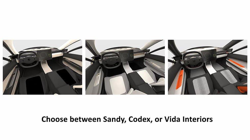 Si vous voulez un Aptera, il y a un configurateur. Il permet de choisir son pack de batterie, sa couleur (1500 dollars en option si autre que blanc, gris ou noir), son intérieur parmi les trois ambiance (+900 dollars si couleur spécifique), 2 ou 3 moteurs et panneaux solaires sur le capot avant, le capot arrière. Toute option prise, il vous en coûtera 50 700 dollars…aux USA.