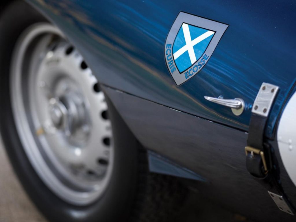Le morceau, quel morceau ? Ni plus ni moins qu’une certaine Jaguar Type-D (châssis XKD 501, moteur L6 3.4 l) de l’écurie Ecosse lauréate des 24 Heures du Mans en 1956 entre les mains de Ron Flockhart et de Ninian Sanderson après 299 tours, plus de 4030 km et une vitesse moyenne de 168 km/h.