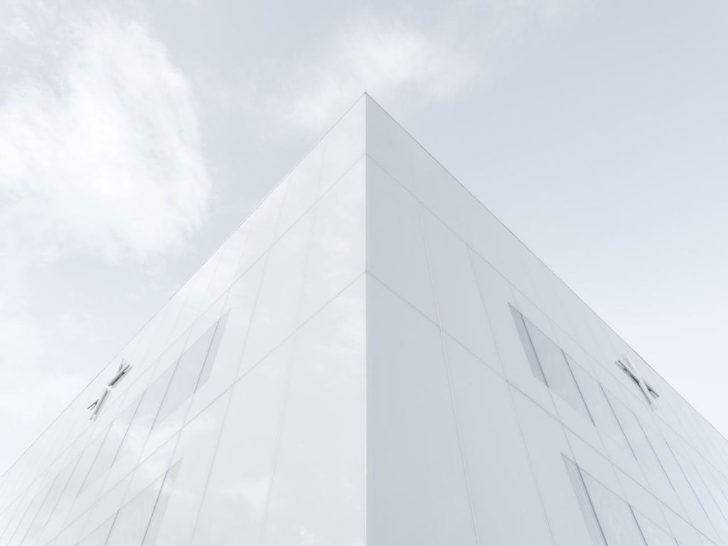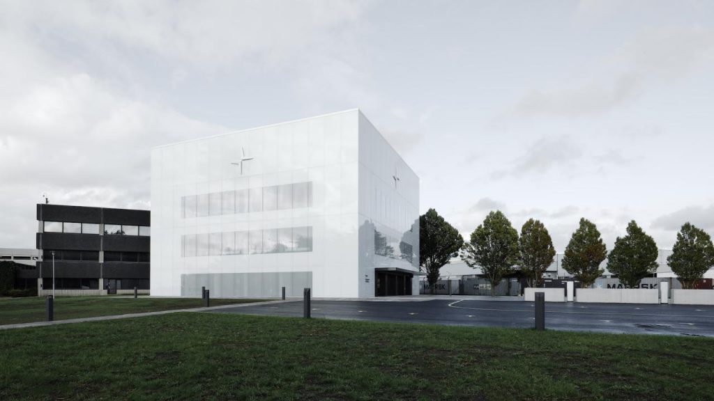 Ce que certains décriraient comme un bâtiment blanc avec de grandes vitres est présenté par la marque comme un « cube sculpté dans la neige » doté d’une façade entièrement faite de verre pour laisser passer environ 60 pour cent de la lumière du soleil.