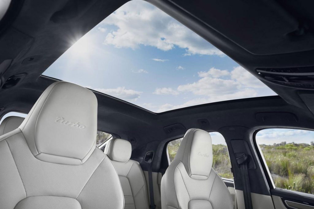 La dotation standard prévoit un toit vitré panoramique fixe, qui sera remplacé en option par… un toit plein, mais en carbone pour gagner sur la masse en hauteur. Cette option s’accompagne de la sellerie intérieure à carreaux noirs et blancs, de touches d’alcantara et de carbone à l’intérieur, et de jantes 22 pouces. Et comme sur quasiment toutes les Porsche à présent, un aileron se déploie selon la vitesse. Il est ici implanté au bas de la lunette, comme sur la Panamera et non pas au sommet du hayon.