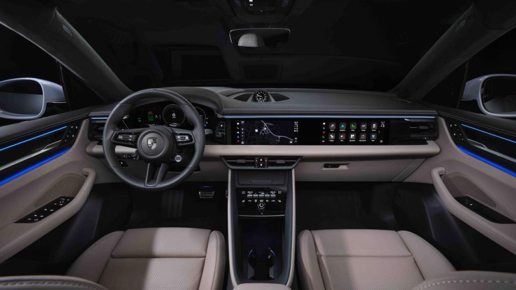 La technologie à l’intérieur du Macan se décompose en trois écrans sur le tableau de bord avec un système d'infodivertissement de 10,9 pouces en position centrale, une autre unité identique de 10,9 pouces disponible pour le passager avant, et un écran d'informations pour le conducteur de 12,6 pouces, le tout étant agence de manière carrée et limpide.