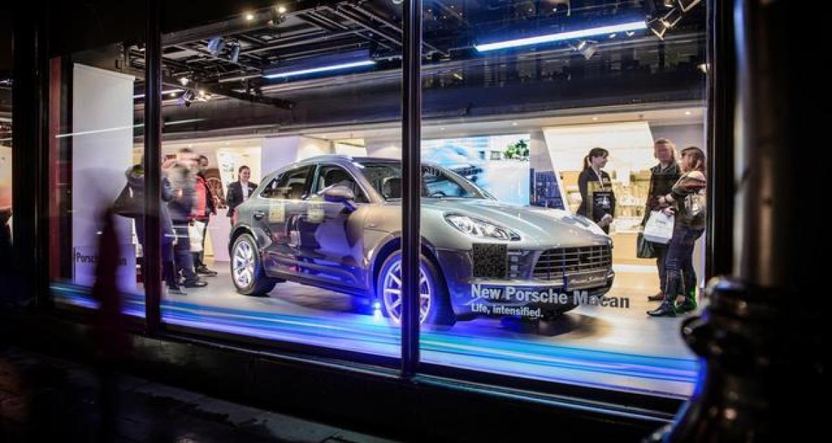 Veloster, Karma, CT200h, ix35 (liste non exhaustive) : nombreuses ont été les autos à être installées bien en vue dans les vitrines du magasin Harrods à Londres. Jusqu’au 5 février prochain, c’est donc le porsche Macan qui prend place. Porsche a même loué trois vitrines pour ajouter une 911 Turbo S et une Panamera dans son exécution hybride (Panamera S E-Hybrid). A voir donc au cœur du quartier de Knightsbridge à Londres.