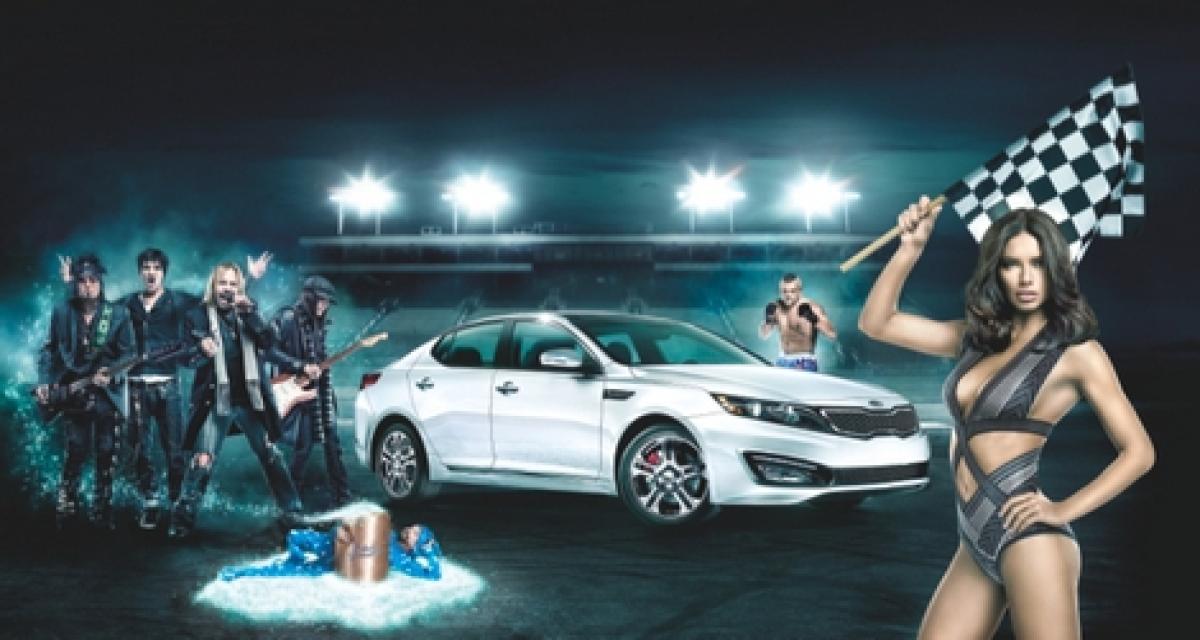 Et pour communiquer sur la dernière Optima, son cœur de cible aux USA, Kia a ratissé large s’offrant les services du groupe Motley Crue mais aussi ceux du champion de MMA (Mixed Martial Arts) Chuck Liddell ou du champion de rodéo Judd Leffew mais aussi (et surtout pour certains) le mannequin brésilien Adriana Lima qui agitera le drapeau à damiers.