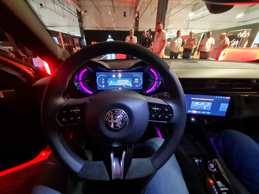 Parmi les détails agréables, on note un éclairage latéral de la console, des aérateurs en forme de Trèfle avec le logo Biscione rétroéclairé au centre, le volant à méplat et des garnitures agréables au toucher sur les flancs de la console et les intérieurs de porte, au niveau des poignées d’ouverture. Par contre, d’autres détails sont moins flatteurs, avec un plastique dur sur le dessus du tableau de bord et l’instrumentation « cannochiale », des contreportes similaires à celles d'une Fiat 600, et des commandes basiques issues de toutes les gammes Stellantis, qui trahissent cette fois-ci la traque des coûts de production.