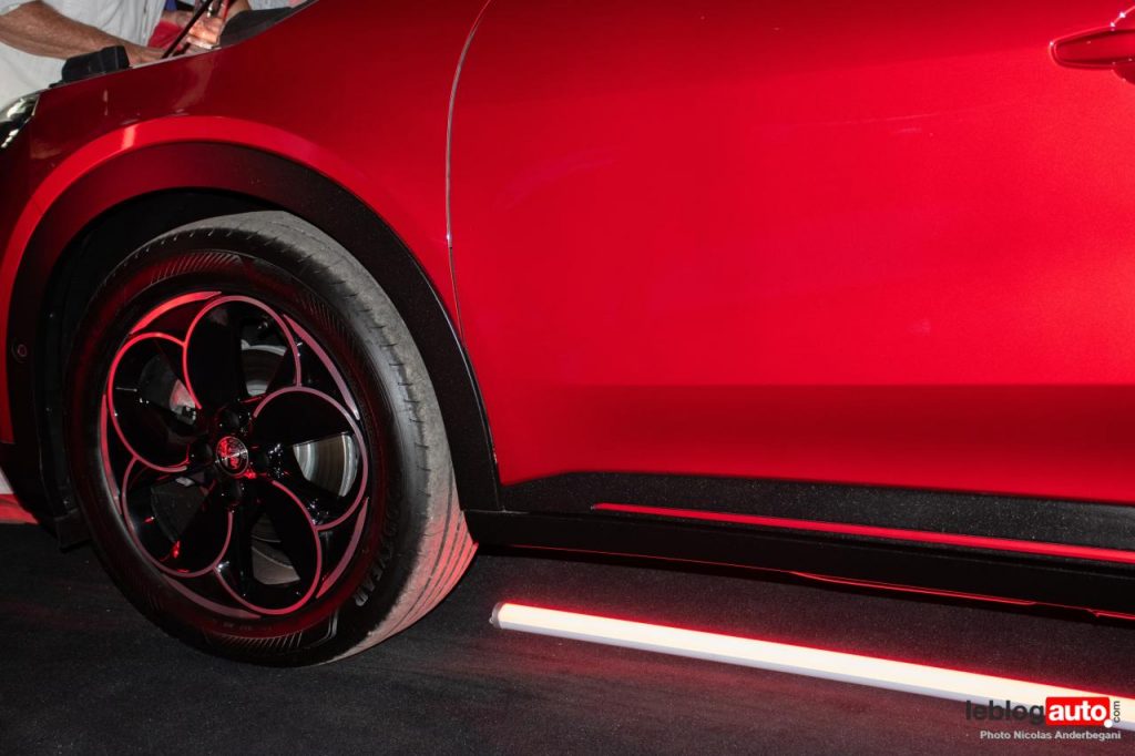 L’arrière rompt également avec le design habituel d’Alfa Romeo, caractérisé par cette barre noire qui traverse de part en part la carrosserie et se termine en demi arc de cercle vers le bas, intégrant la signature lumineuse à troits traits qui « singe » la signature Alfa mais sous forme de leds. Les goûts et les couleurs sont divers. Certains apprécieront ce mélange d’hommage Codatronca et de modernisme, mais d’autres déploreront un certain conformisme aux canons esthétiques actuels, fortement teintés d’une influence asiatique, lorgnant sur les traits Kia, Hyundai, MG…>Pas facile non plus de développer un design très élancé sur un SUV compact.