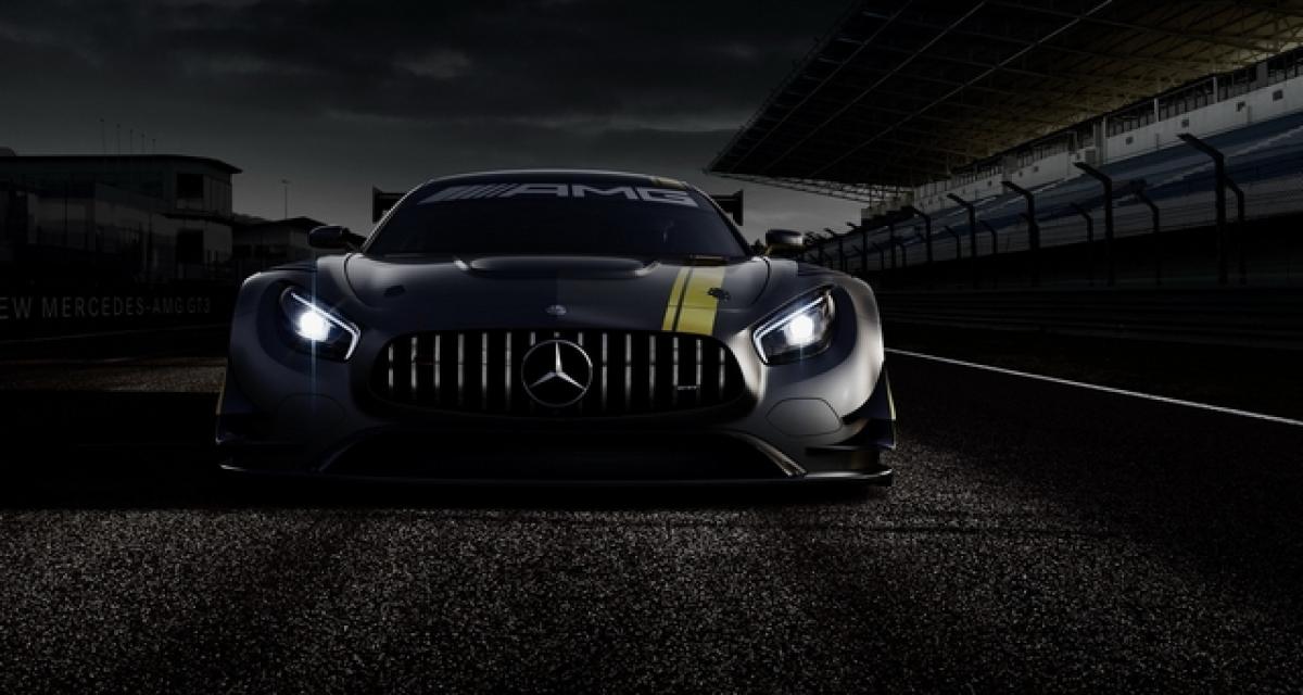 Mercedes continue de dévoiler au compte-gouttes des images de sa future AMG GT3. Après un premier teaser donnant un avant-goût des lignes du véhicule, voici que la marque à l’étoile révèle la première image officielle du modèle définitif. Dérivée de la Mercedes AMG GT de série, l’AMG GT3 succèdera à la SLS AMG GT3 à partir de la saion 2016.
