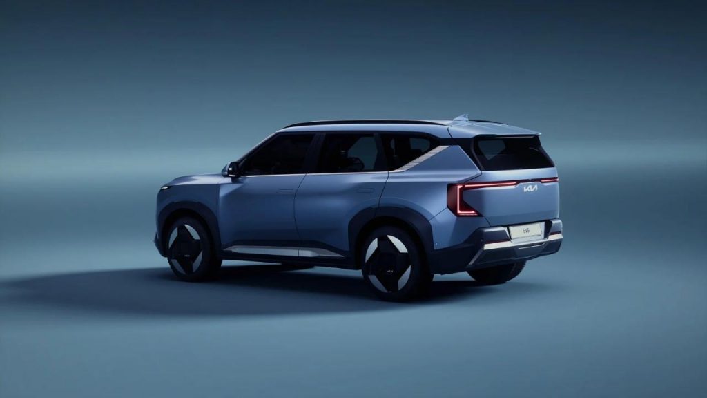 Mesurant 4 615 mm de long pour un empattement de 2 750 mm, ce SUV « compact » entièrement électrique se positionne sous l'EV6, tout en empruntant l'apparence du plus grand EV9 . Le style du modèle de production est presque identique au concept présenté en avant-première il y a quelques mois. C’est donc assez bizarre, avec cette immense face avant flanquée d’optiques très fins en forme de mandibules. Le profil est également très carré, avec néanmoins des poignées de porte intégrées pour améliorer le Cx, alors qu’à l’arrière, on retrouve des optiques horizontaux dont les extrémités se terminent en C anguleux. Les roues futuristes sont légèrement plus petites que sur le concept, mesurant jusqu'à 21 pouces, les entrées intégrées dans les phares à LED au look pointu ont été remplacées par des projecteurs et les pare-chocs ont reçu des modifications mineures.