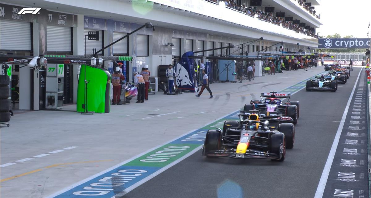 Il y a un petit bouchon dans la ligne des stands. Tout le monde veut rapidement aller en piste car le temps est court en qualif sprint. Ah on va déjà plus vite qu'en SQ1 avec Perez en 1:27:865. Leclerc se casse les dents sur ce temps en 1:27.777. Suivent Ricciardo, Alonso, Sainz, Stroll, Hülkenberg et les deux Mercedes. Piastri se cale juste derrière Ricciardo tendis que Norris signe le meilleur temps provisoire en 1:27.597.