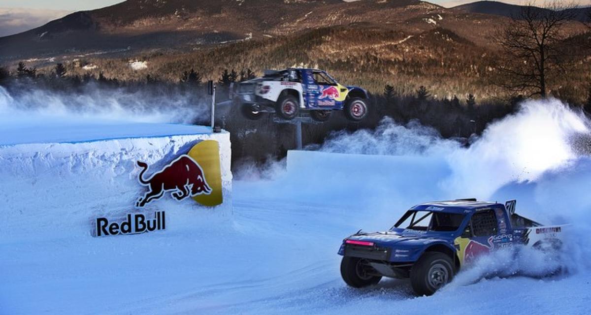 Prenez le Trophée Andros. Transposez-le aux Etats-Unis. Puis remplacer les voitures par des pro-trucks. Ensuite, organisez des courses en 1 contre 1. Enfin, disposez des tremplins sur la piste, afin de garantir le spectacle. Vous obtenez ainsi une épreuve digne d’un jeu d’arcade, le Red Bull Frozen Rush.
