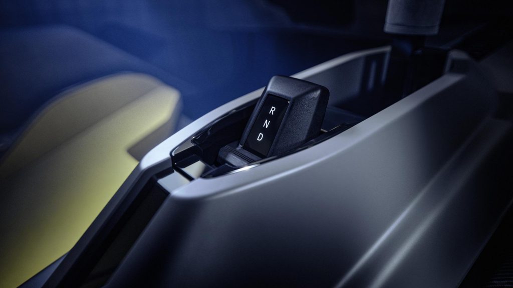 À l’intérieur, la Renault 5 Turbo 3E adopte une ambiance résolument sportive. Les sièges baquets avec harnais 6 points, le tableau de bord en fibre de carbone et les revêtements en Alcantara renforcent cette atmosphère de compétition. Le frein à main vertical, inspiré du rallye, ajoute une touche radicale.