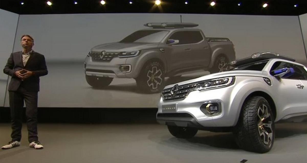Voici donc les premières images du pick-up Renault, un pick-up au patronyme fleurant l’aventure, les grands espaces, l’Alaskan, un pick-up intermédiaire qui sera introduit sur de nombreux marchés à l’échelon mondial. Un pick-up ici d’une tonne de charge utile présenté à l’état de concept et se posant bien en partie comme un cousin du Nissan Navara NP300.
