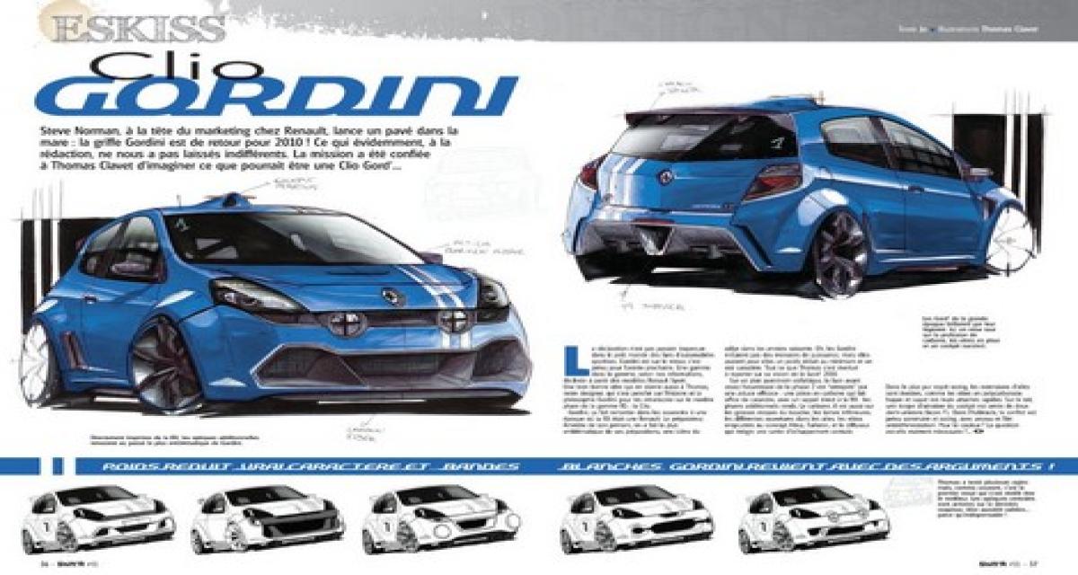 Suite à cette annonce, voici ce que le jeune designer Français Thomas Clavet à imaginé et publié dans le magazine Shift’R en combinant le style Gordini avec les lignes résolument modernes de la toute nouvelle Clio RS phase 2.