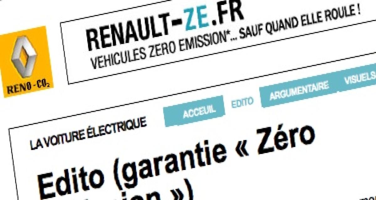 Alors que Renault organise aujourd’hui une série d’essais à l’attention de la presse de sa nouvelle gamme Renault ZE, l’association Agir pour l’Environnement met en ligne un site internet www.renault-ze.fr dont le but est de dénoncer l’opération de blanchiment écologique mise en oeuvre par le constructeur automobile français.