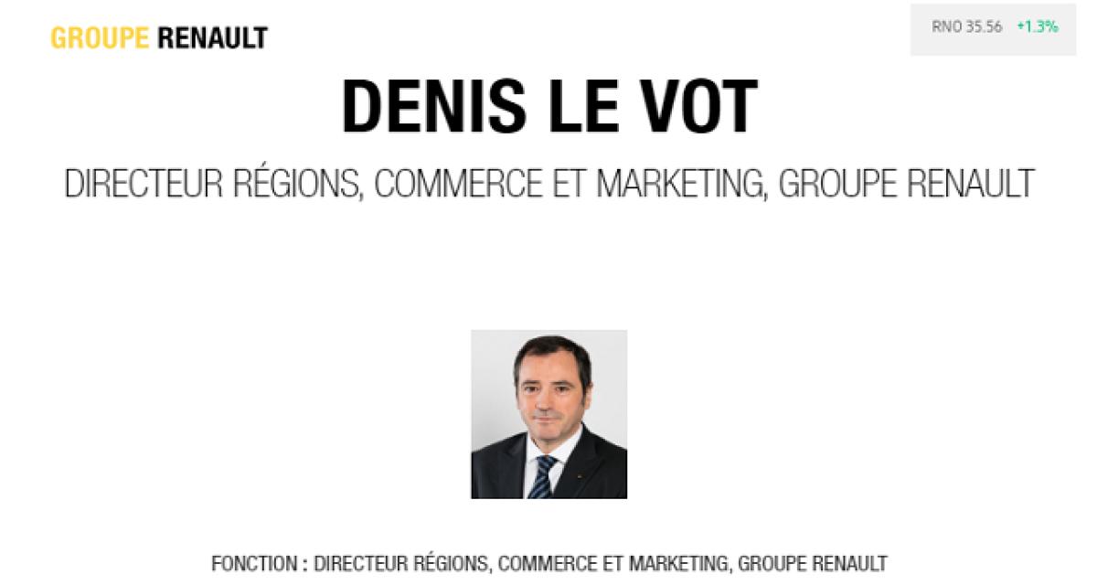 Le titre de sa fonction résume à lui tout seul les points forts de Denis Le Vot  puisqu’il est nommé directeur régions, commerce et marketing pour le Groupe Renault. Ses fonctions exercées à travers toute la planète ou presque lui offrent une large vision des choses, son expérience au niveau marketing constituant un de ses autres atouts. Via cette nomination, le constructeur affiche sa ferme volonté de miser sur l’international.