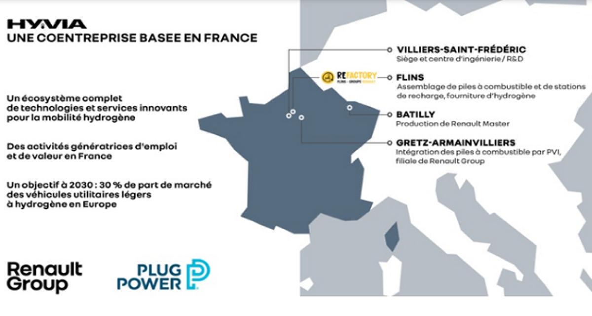 L’assemblage de piles à combustible et de stations de recharge sera assurée à partir de fin 2021 à Flins (Yvelines), dans le cadre du projet « Re-Factory », « avec la capacité d’étendre très rapidement la production », a par ailleurs déclaré David Holderbach.