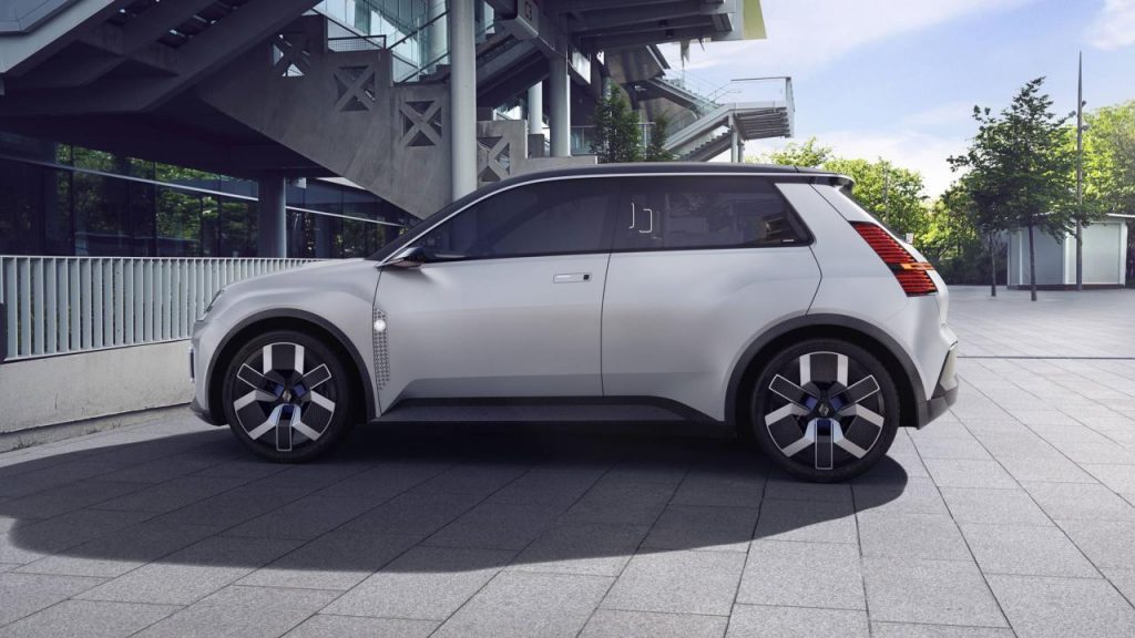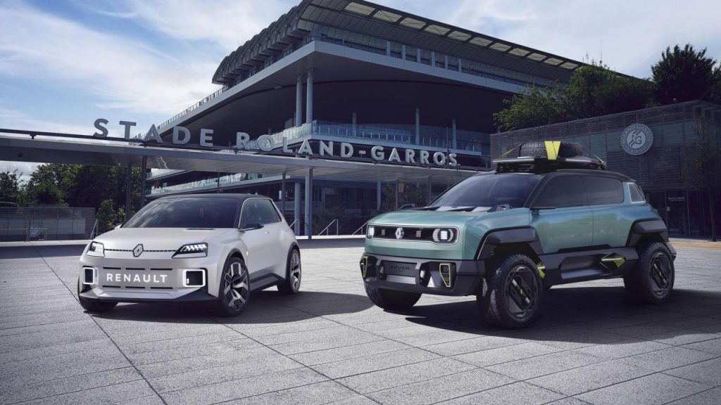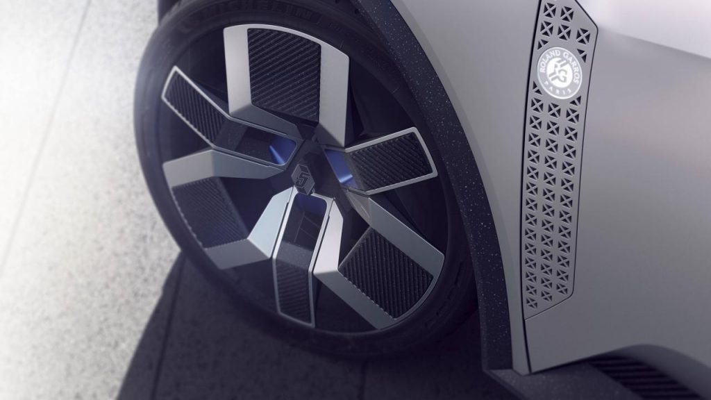 Cette grille porte également le logo du tournoi rétroéclairé. Les contours des vitres sont satin chromé, et les jantes ont des touches de bleu anodisé. Selon Renault, ce show car préfigure une version de série qui sera lancée quand la Renault 5 100% électrique sera proposée en série.