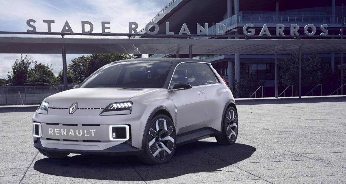 Le concept Renault 5 électrique vire sa couleur jaune vif pour une couleur plus sobre, plus tennistique ("Wimbledon" même) : blanc satin métallisé. Sur cette carrosserie immaculée, Renault y greffe des symboles du tennis et même du stade Roland Garros, écrin du tournoi du grand chelem français. Des grilles en arrière des ailes avant sont ajourées de croix de Saint André. C'est un symbole fort que l'on retrouve partout dans le stade et qui a été conservée avec les nouveaux courts de tennis.