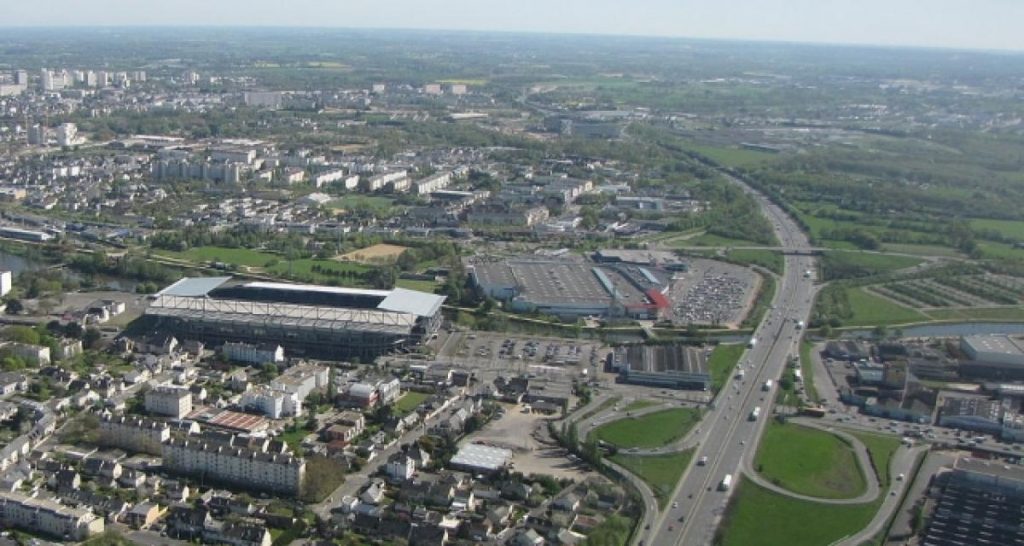 Source : Ouest France, illustration : Stade Rennais Online/CC2.0 (le Stade Rennais, la rocade et la route de Lorient)