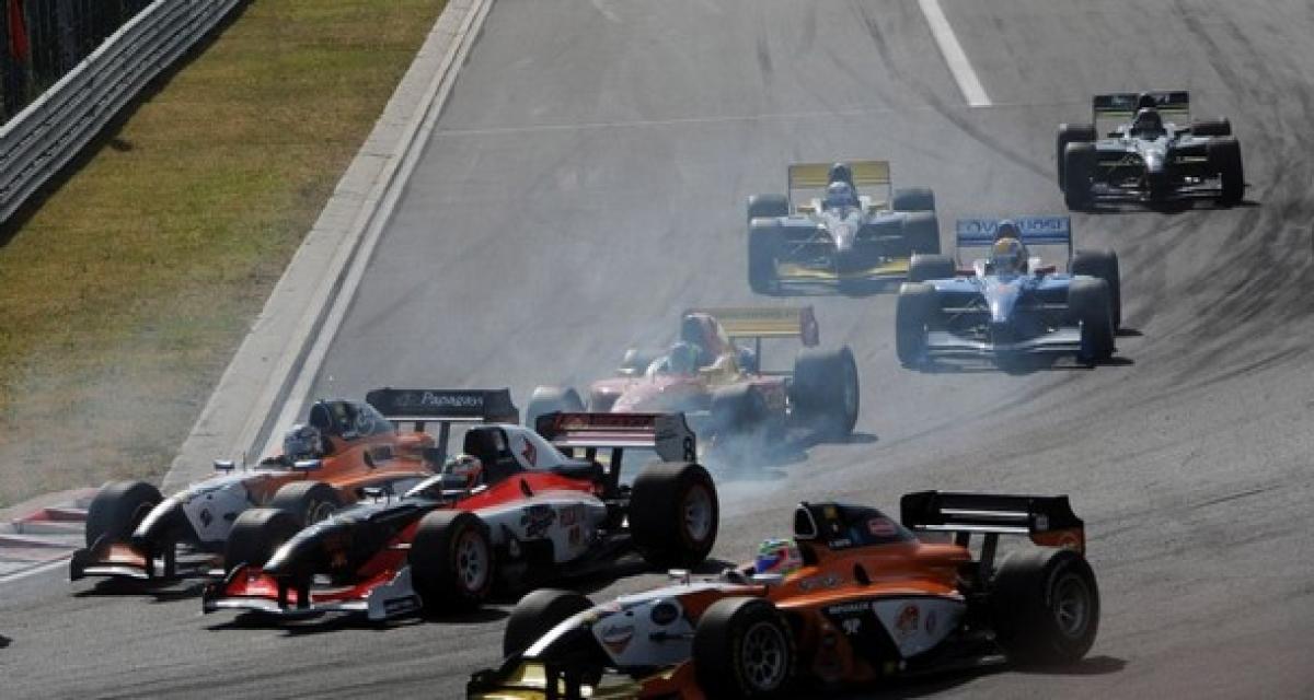 Dans la course 1, Sato prend le meilleur départ, dépassant Ghirelli et Kiss. Néanmoins, le poleman reprend son bien juste après. Pas de dépassements; ce seront les arrêts aux stands qui modifieront la hiérarchie. Sato, Sergio Campana (Ibiza) et Riccardo Agostini (Manor) optent pour un arrêt tardif. Une stratégie payante pour les deux Italiens, qui repartent devant Kiss. Ghirelli rentre encore plus tard, mais l’arrêt s’éternise et bien sur, Sato ne l’attend pas.