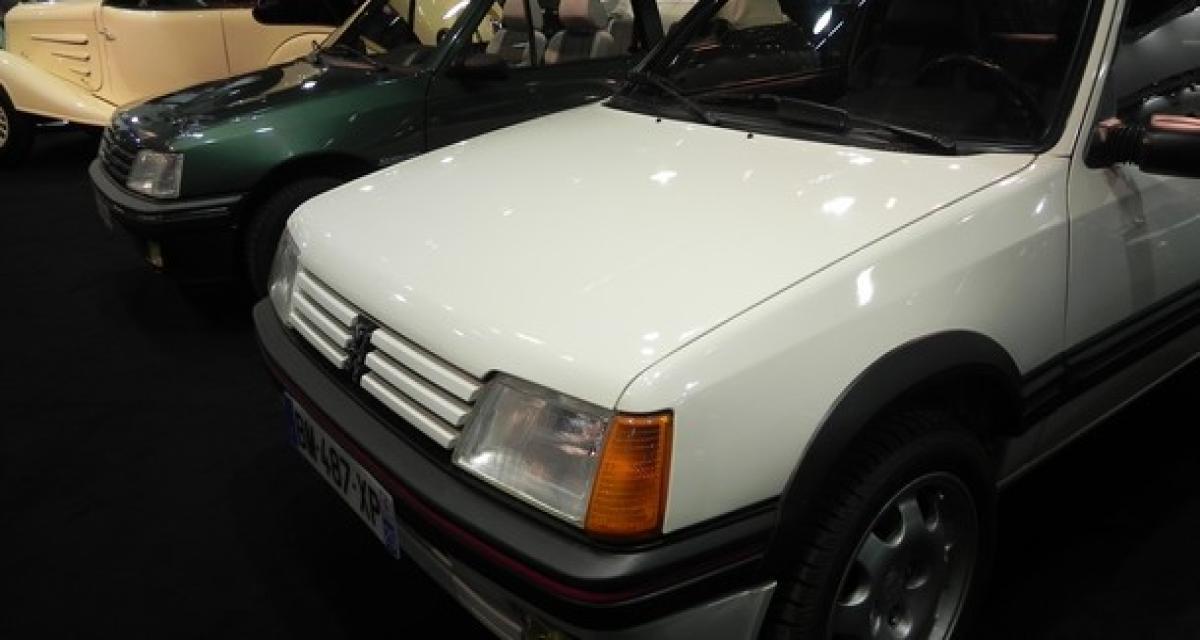 A Rétromobile, le stand Peugeot expose 3 voitures: une GTI 1,9l, un cabriolet Rolland-Garros et une XA (utilitaire) qui participera au Trophée 205.