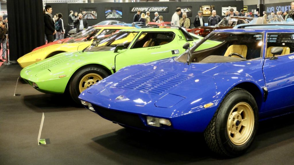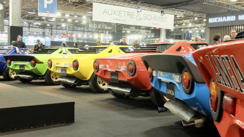 Est-ce parce que Lancia se meurt que son histoire s’affiche avec tant de vigueur ? A Retromobile la marque turinoise semble plus vivante que jamais.Qu’il s’agisse d’une collection de Citroën DS, de Bugatti 57 ou de Ferrari 250 Tdf, Luka Hüni fait toujours les choses en grand. Alors quand les filles de Vicenzo Lancia sont à l’honneur, c’est un alignement de Stratos de toutes les couleurs qui barrent son stand. Des Stratos sémillantes qui cachent quelques Delta et autres 037 aux couleurs d’Alitalia. Histoire de rappeler que la firme turinoise détient toujours le record du nombre de titres et de victoires remportés en championnat du monde des rallyes.