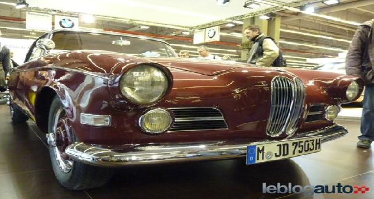 Outre cette BMW 503 Coupé, la marque munichoise avait amené une BMW 3,0CSL. Digne héritière des BMW 2000 et 2000CS, le BMW 3.0CSL (E9 pour les connaisseurs) représente pour certains l’un des plus beaux coupés de l’époque. Comme sa devancière, la BMW E9 est assemblé chez le célèbre carrossier Karmann.
