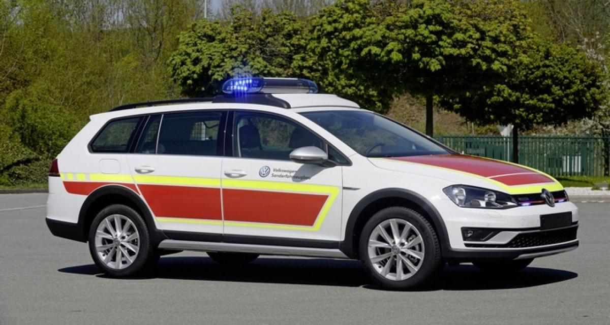 Arborant une peinture blanche avec des bandes rouges et jaune fluo, la Golf Alltrack d’intervention est bien entendu dotée d’un gyrophare afin d’être aisément reconnaissable dans la circulation.