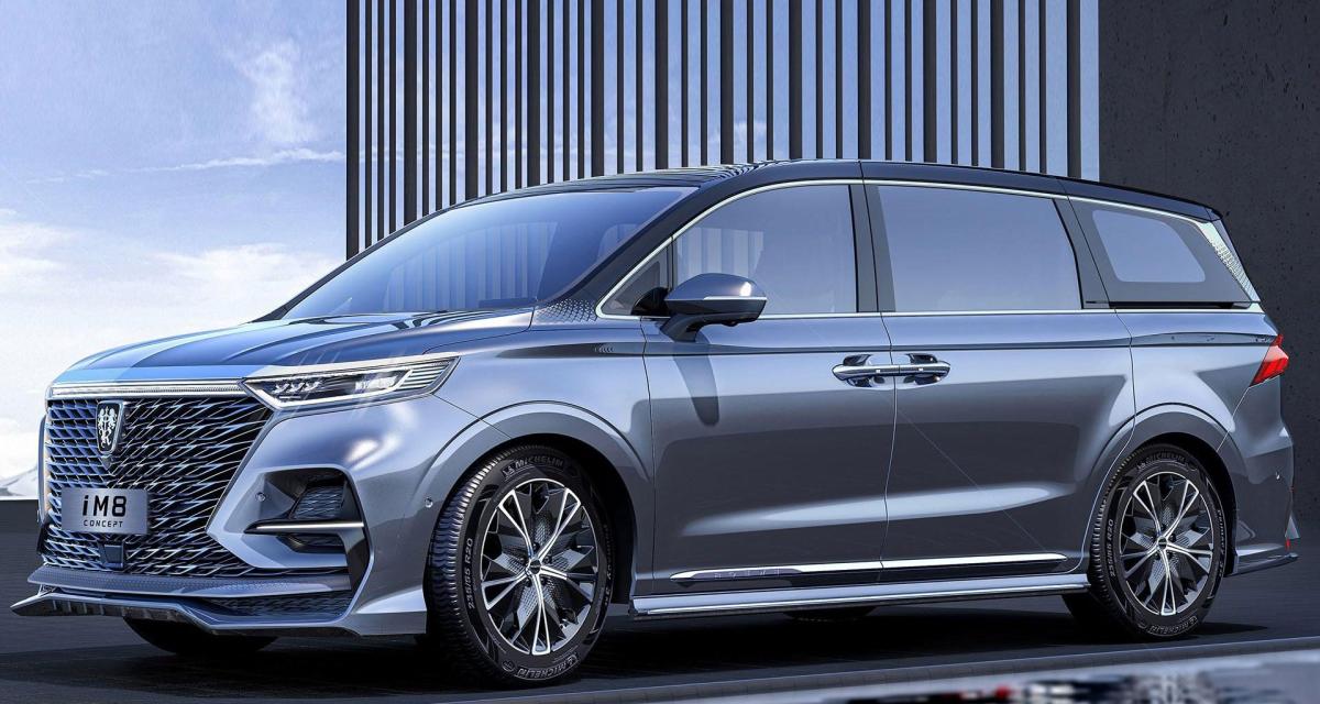 Préfiguré par le concept Vision-iM (salon de Shanghai), le Roewe iM8 en garde les grands traits. Il évolue néanmoins assez sérieusement dans ses proportions. Et semble perdre tout tendance à la « crossoverisation »… Il est aujourd’hui encore présenté comme un concept, mais très proche de la série. Ôtons le kit carrosserie avec ses bas de caisse excessifs sur un monospace et nous aurons le modèle final. Avec toujours une calandre béante façon Lexus. Notons les décors du pied A qui assurent la transition du toit noir, ainsi que l’intégration du rail de la porte coulissante. Et l’on ne pourra s’empêcher de souligner que ce nouveau modèle s’intègre dans la même lignée que le Toyota Sienna ou Kia Carnival avec son capot plus prononcé.