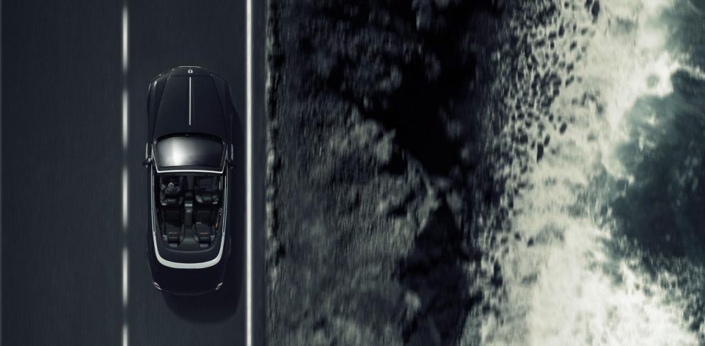 Une mise en scène confirmée par la capote exclusivement noire. Et sur cet exemplaire qui sera présenté à Goodwood, une carrosserie et un habitacle de cette même teinte. Le noir est ici souligné par des inserts mandarine sur les sièges, les panneaux latéraux et la planche. Comme sur les Ghost et Wraith, on retrouve à bord de nouveaux éléments de décor mêlant la fibre de carbone à de fin fils d’aluminium. Le logo infini, symbole de Sir Malcolm Campbell, est présent entre les places arrière. Connu pour ses records de vitesse.