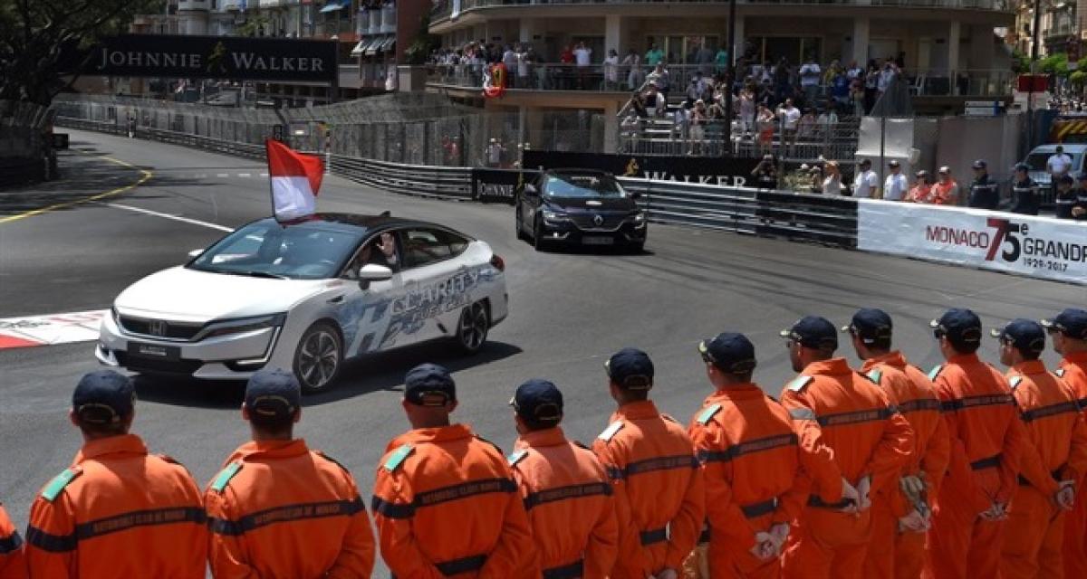 Ce tour d’honneur du Prince Albert II de Monaco fut la toute première apparition publique sur le « vieux continent » de la Honda Clarity Fuell Cell, même si les premières voitures ont débarqué à la fin de 2016. Pour Honda, c’était une manière d’honorer la première victoire d’Ayrton Senna à Monaco, le 31 mai 1987, il y a 30 ans déjà, au volant d’une Lotus-Honda. D’aucuns auraient préféré un podium d’une McLaren lors de la course, mais bon.