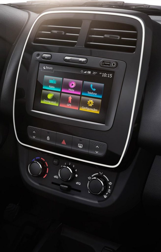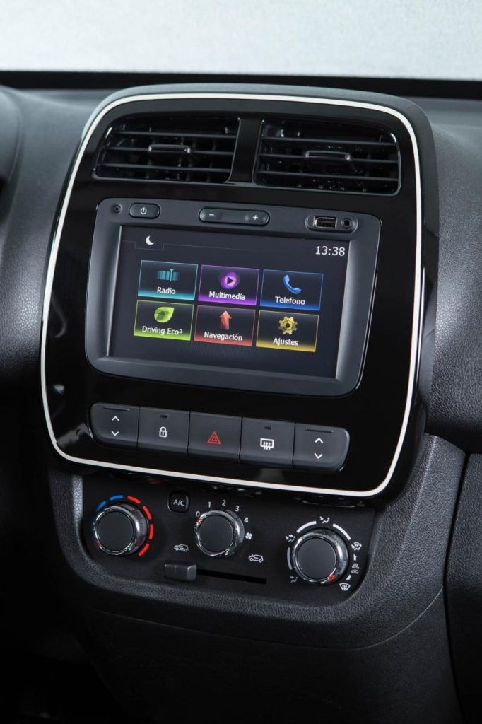 Esthétiquement, c’est à l’intérieur que les changements ont été effectués. La console centrale a notamment été réaménagée. Le panneau intégrant les interrupteurs de vitres électriques, de signal de détresse et de verrouillage centralisé a échangé sa place avec le panneau de commande de climatisation et devient ainsi plus accessible. L’instrumentation digitale du Kwid indien est remplacée par un bloc analogique plus complet avec un tachymètre, un compte-tours et une jauge à essence.