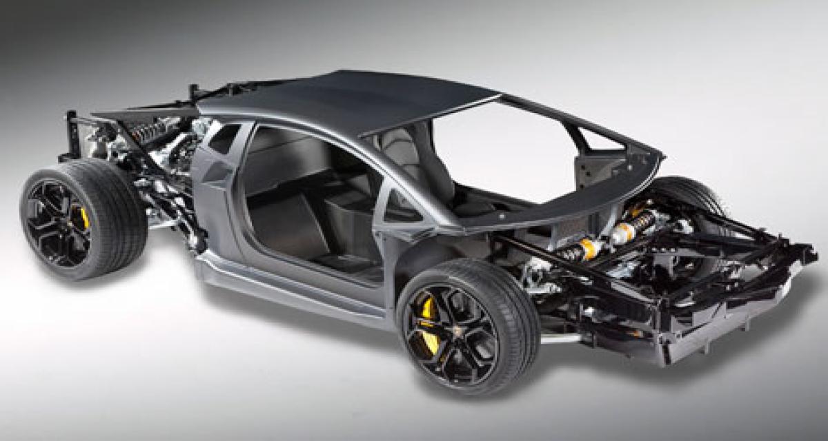 Nous avions déjà découvert le moteur, les suspensions, puis la cellule centrale en carbone de la nouvelle Aventador. Tout en conservant le secret jusqu’au dernier jour sur le style de son nouveau haut de gamme, Lamborghini dévoile à présent ces trois éléments assemblés entre eux via les sections avant et arrière de la structure, largement réalisés en aluminium… On découvre au passage quelques nouveaux éléments, le siège conducteur, les jantes laissant largement voir les épais étriers jaunes… Un assemblage qui a été dévoilé à l’occasion des Audi Techdays, journée de communication durant laquelle le constructeur présente l’évolution de se technologie, et en particulier de ses projets de recherche.