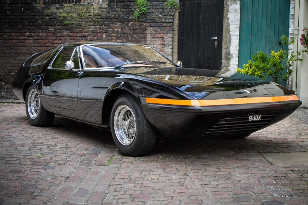 Cette voiture, dont le style incarne superbement le design des années 70, a été réalisée en 1972 par un carrossier anglais, Panther Westwinds, à la commande du fameux importateur Ferrari aux Etats-Unis et acteur majeur de l’histoire de la marque Luigi Chinetti pour un de ses clients promoteur immobilier en Floride, Bob Gittleman, à qui la voiture fut livrée en 1975. Après qu’il décida de s’en séparer en 1980, la voiture est passée depuis aux mains de divers collectionneurs, apparaissant dans divers concours d’élégance au fil des années.
